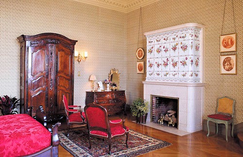 He found the tile stove on one of his many trips to Europe and