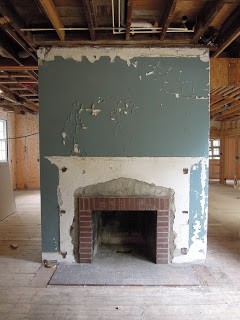 The fireplace without the mantel is a interesting vignette on it’s own.